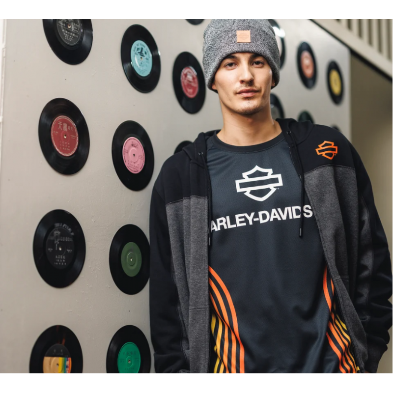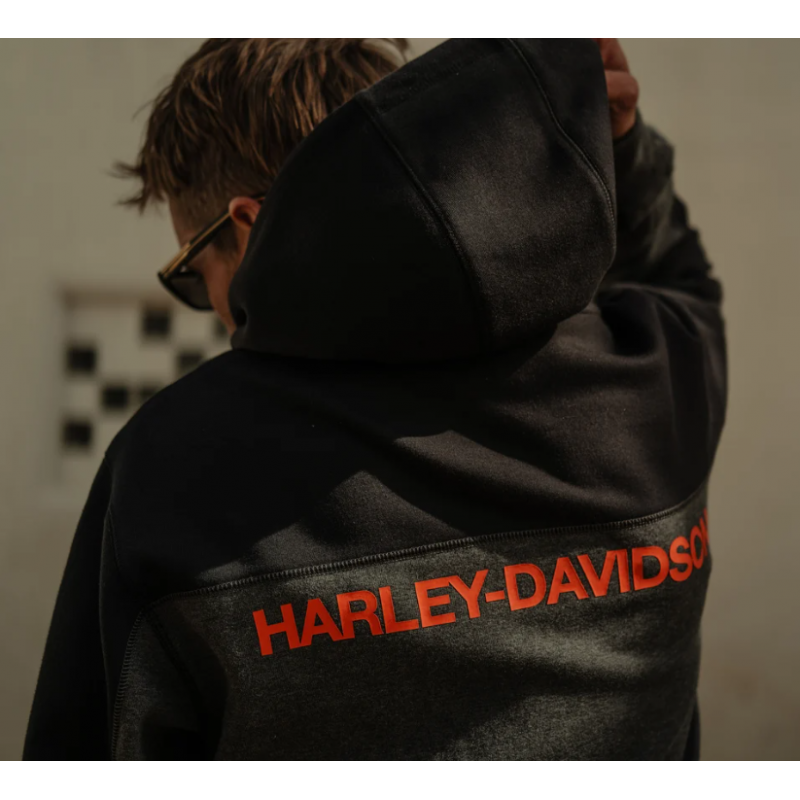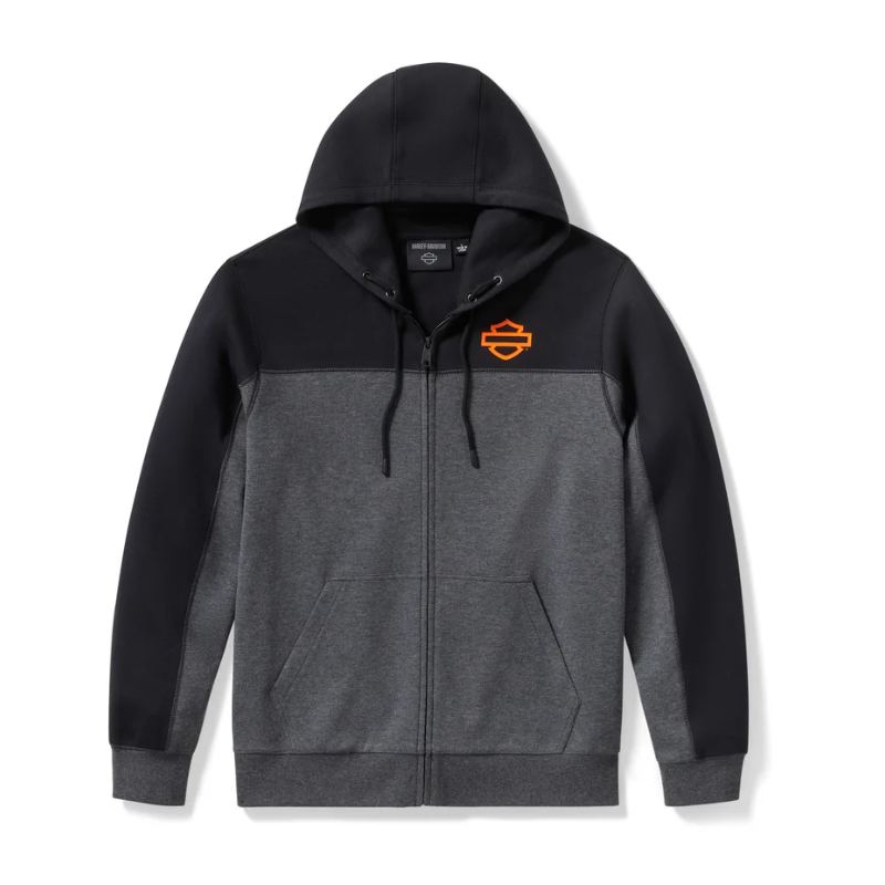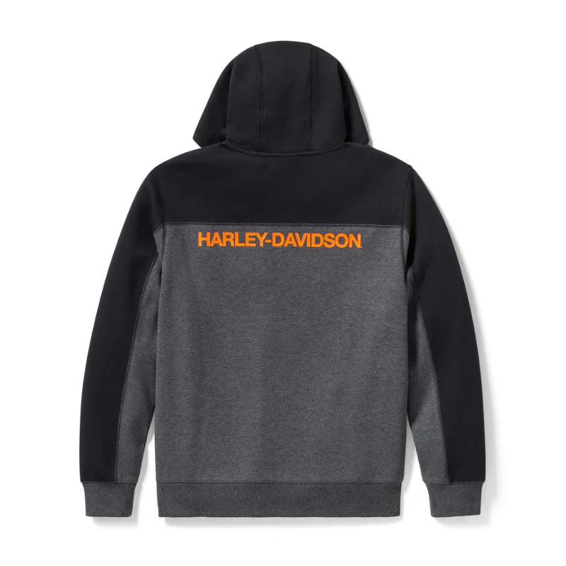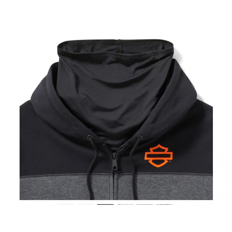 Le style moto dynamique prend tout son sens avec notre sweat à capuche H-D® TECH Gaiter à fermeture zippée intégrale Confectionné dans un tissu interlock coton/polyester lourd, durable et confortable, pour une coupe décontractée. Il est doté d'un tour de cou intégré qui se porte sur la bouche et le nez pour bloquer le vent ou repousser la poussière et les insectes, ce qui en fait un choix pratique sous votre équipement moto. Ce sweat à capuche pour homme zippé sur le devant est rehaussé de nos graphismes contemporains et d'un design colorblock qui attire le regard.