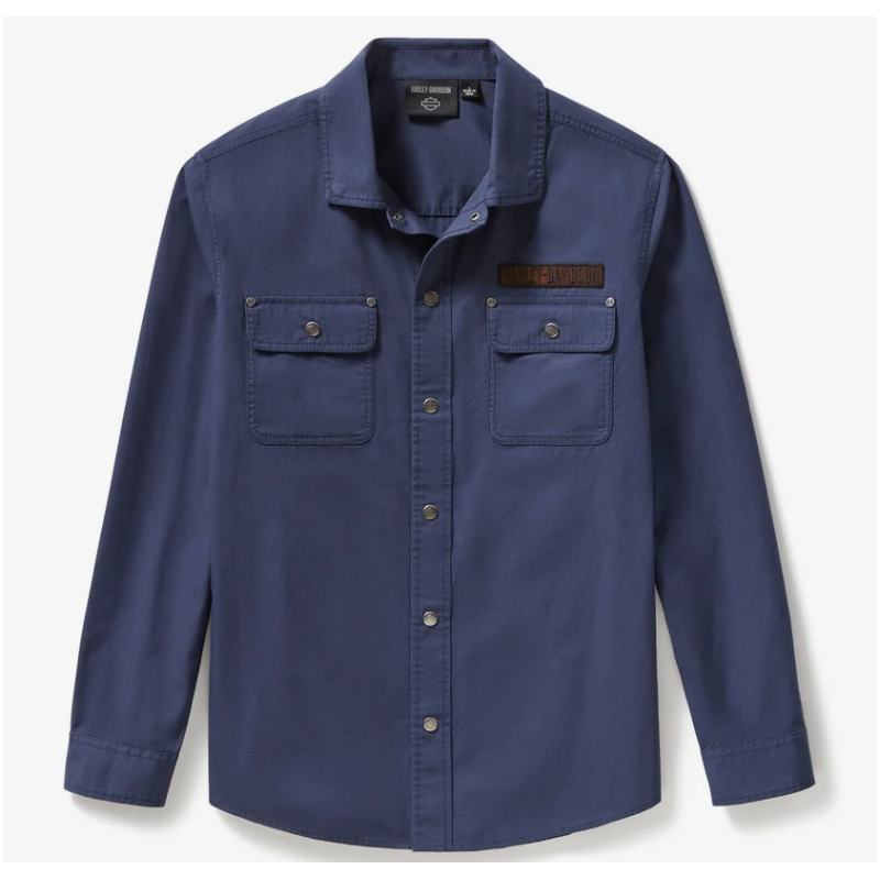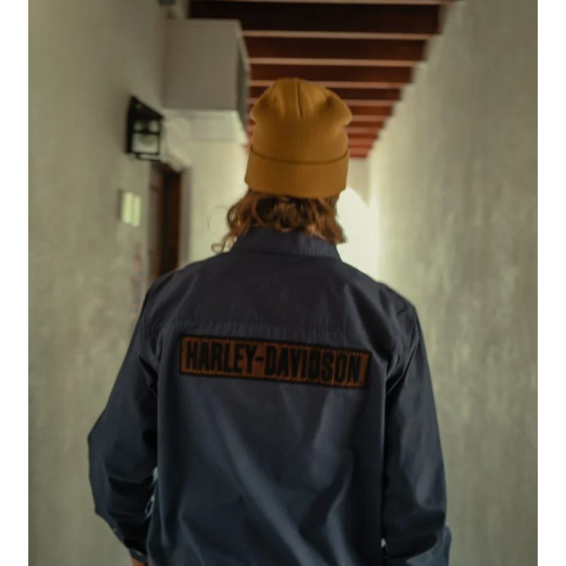 Votre look robuste inspiré de la moto est parfait avec notre surchemise en sergé Working Man. Elle est confectionnée en popeline de coton pour une sensation de douceur et de respirabilité, et prélavée pour plus de souplesse. Cette chemise à manches longues pour homme est dotée de boutons-pression griffés et de rivets décoratifs pour un look soigné, ainsi que d’un col à boutons-pression dissimulés qui ne flottera pas sous votre équipement moto. Les empiècements brodés sur le devant et dans le dos ajoutent à son look rétro et workwear.