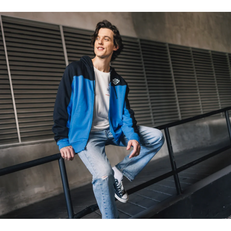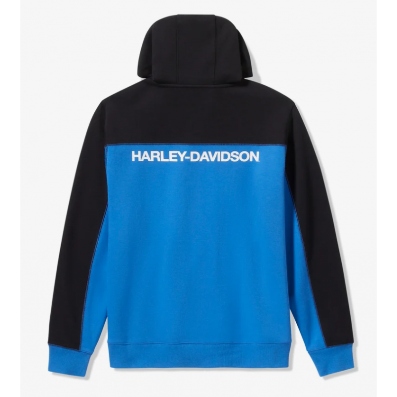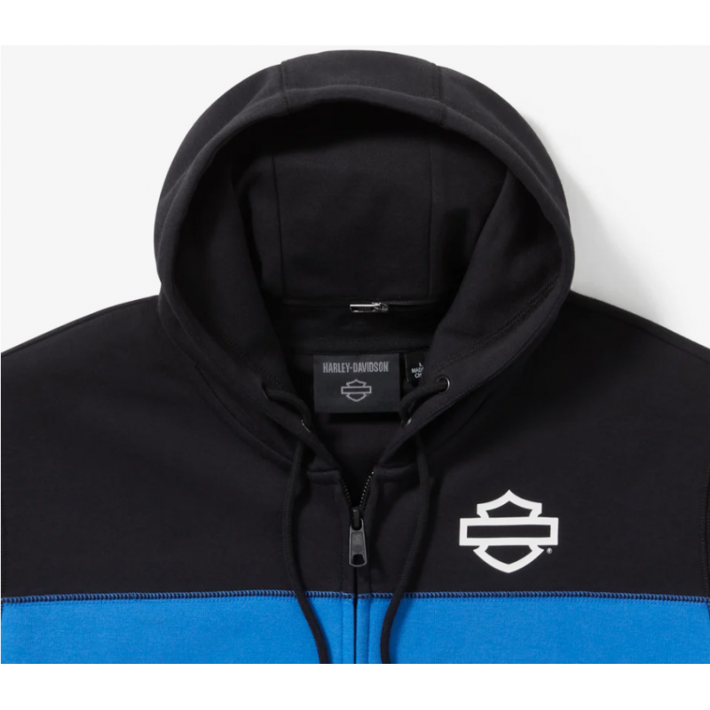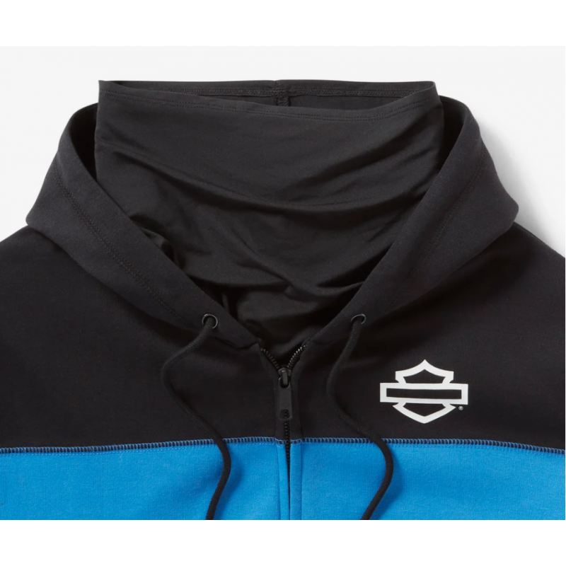 Le style moto dynamique prend tout son sens avec notre sweat à capuche H-D® TECH Gaiter à fermeture zippée intégrale Confectionné dans un tissu interlock coton/polyester lourd, durable et confortable, pour une coupe décontractée. Il est doté d'un tour de cou intégré qui se porte sur la bouche et le nez pour bloquer le vent ou repousser la poussière et les insectes, ce qui en fait un choix pratique sous votre équipement moto. Ce sweat à capuche pour homme zippé sur le devant est rehaussé de nos graphismes contemporains et d'un design colorblock qui attire le regard.