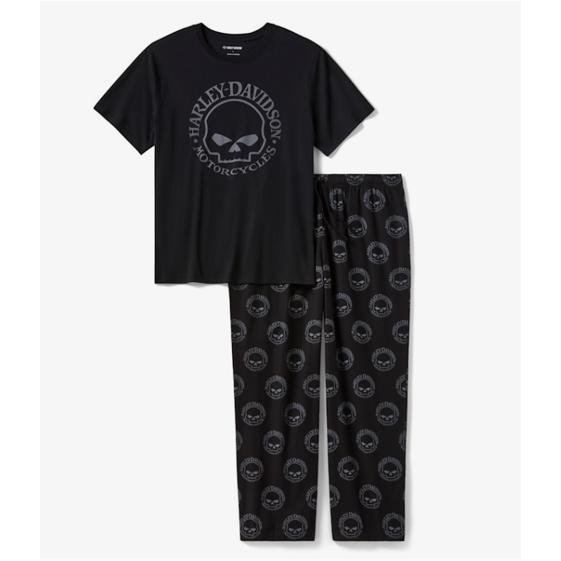 Votre look rend hommage à notre héritage créatif avec l’ensemble de pyjama à manches courtes Willie G™ Skull. Le haut est confectionné dans un jersey de coton/modal doux, tandis que le bas est en flanelle de coton tout aussi confortable. Ce pyjama pour hommes est doté d’une taille confortable à cordon de serrage élastique et d’une encolure en tricot côtelé pour aider à garder sa forme. Cet ensemble arbore le crâne de Willie G. sur le bas et à l'avant. Rappel historique : bien que le crâne soit l’une de ses créations les plus populaires, Willie G. Davidson a également conçu plusieurs motos, dont la FX Super Glide® de 1971 et la FXS Low Rider® de 1977.