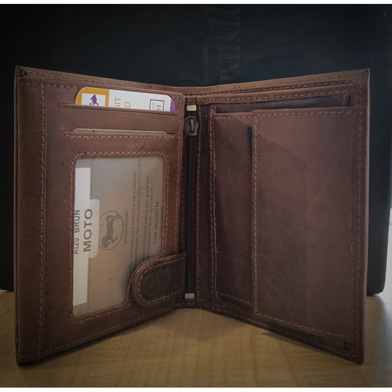 PORTEFEUILLE EN CUIR MARRON - NON HARLEY DAVIDSON - LOGO MOTO - RETRO / VINTAGE - SANS CHAINE