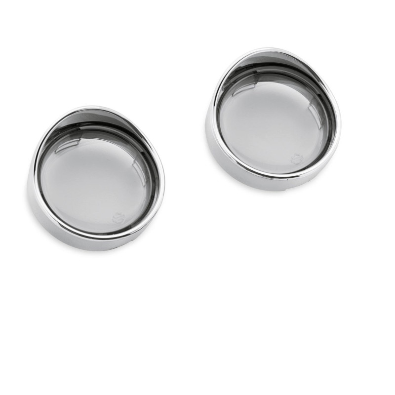 Cabochon de clignotant ARRIERES Bullet fumés avec cerclage chromé style "visière" Harley Davidson.