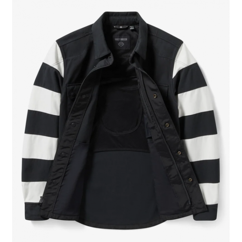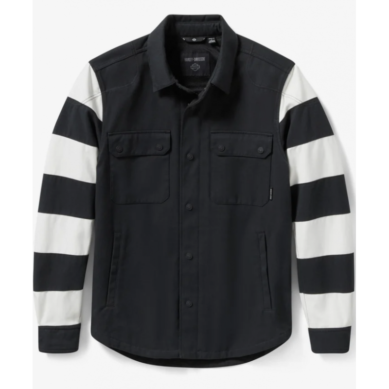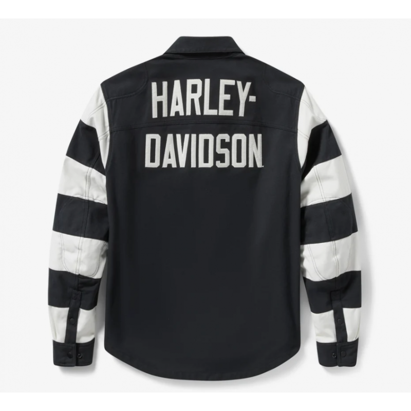 Le style moto rétro s'allie à une protection fonctionnelle dans notre dernière chemise moto H-D® Breakout Operative 2.0. Son mélange sergé épais est partiellement doublé pour offrir un confort similaire à celui d'une chemise plutôt que d'un blouson. Elle est dotée d'un matériau réfléchissant pour améliorer la visibilité, d'un col à boutons-pression dissimulés qui ne flottera pas au vent lorsque vous roulez, et offre une protection supérieure contre les chocs grâce à nos protections D3O® Ghost™ au niveau des épaules et des coudes. Cette chemise moto pour homme est également testée et certifiée pour répondre aux exigences en matière d'abrasion, de déchirure et de résistance des coutures (plus de détails ci-dessous). Elle est agrémentée de bandes sur les manches et de graphismes en feutre inspirés des jerseys de notre équipe de course des années 1920. Familiarisez-vous avec les spécifications ci-dessous, puis commandez la vôtre sans plus tarder.