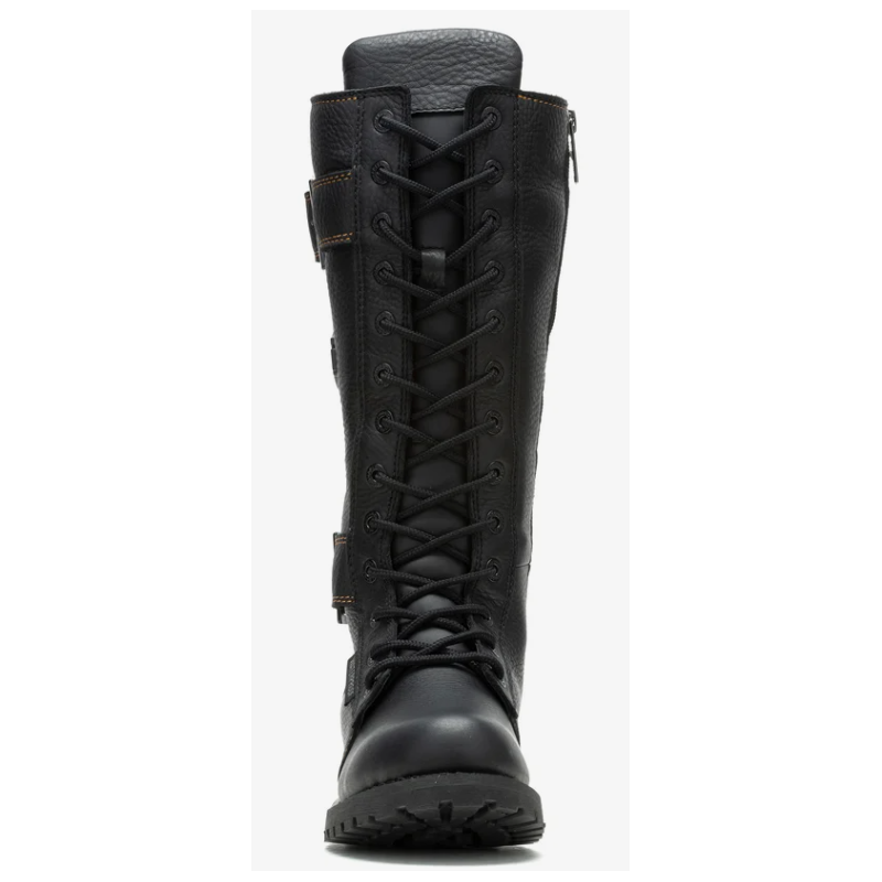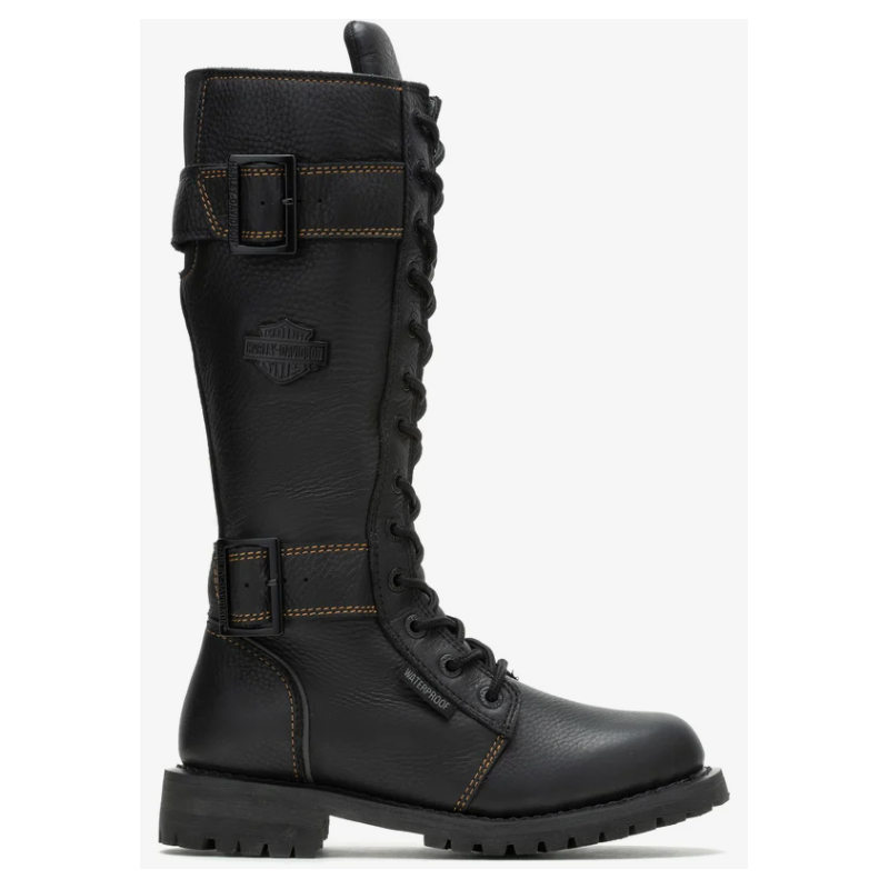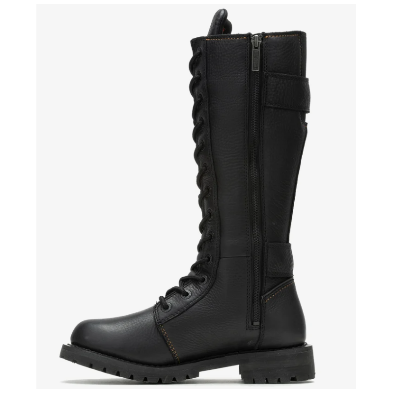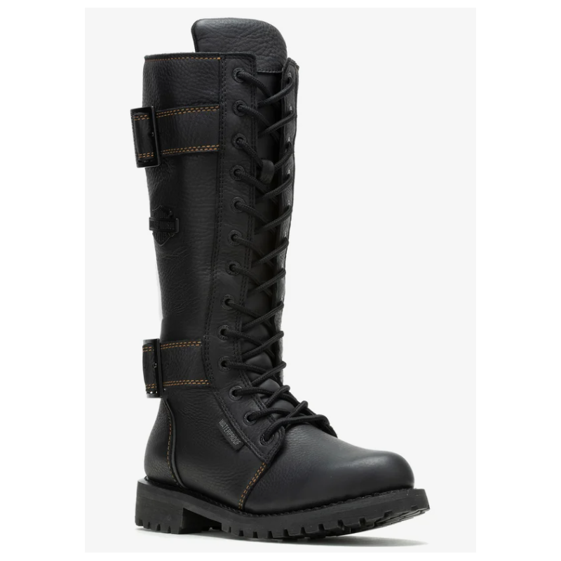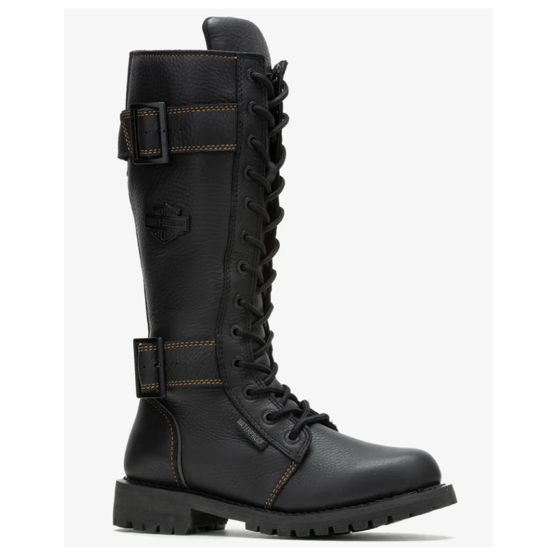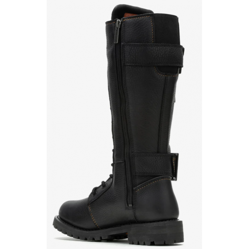 La botte de moto en cuir pour femmes Belhaven à l’allure emblématique de H-D® est une des bottes préférées des fans. Rehaussée de couture dorées, d’une protection de cheville Poron et d’un matériau réfléchissant 3M™. La fermeture éclair verrouillable YKK® permet un laçage facile et le panneau extensible arrière avec boucle vous offre un ajustement parfait.