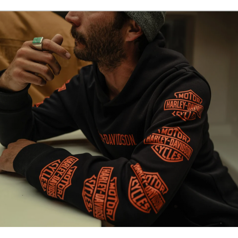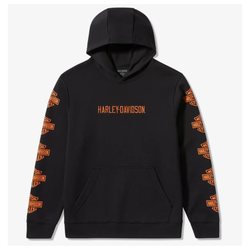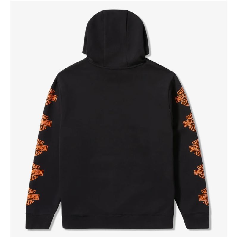 Notre Sweat à capuche pullover Bar & Shield incarne le style Harley authentique. Il est confectionné dans un tissu interlock coton/polyester lourd, à la fois robuste et confortable, et présente une coupe décontractée. Ce sweat à capuche pour homme est doté d'une capuche superposée doublée dans le même tissu ainsi que d'un rivet décoratif sur la poche kangourou pour un look raffiné. Finition avec notre nom brodé sur le devant et nos graphismes les plus remarquables imprimés sur les deux manches.