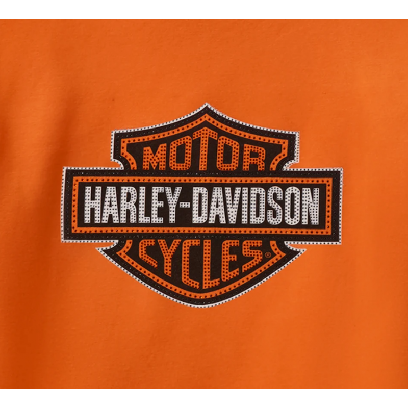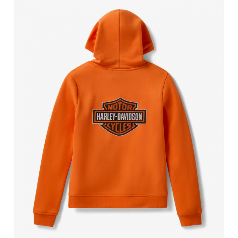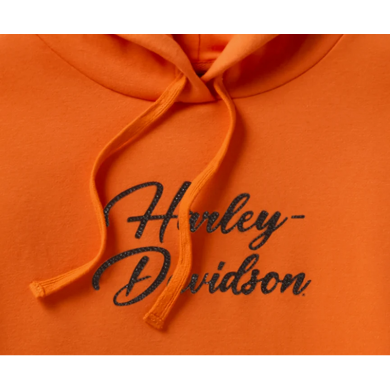 Ajoutez une touche d'éclat à votre look Harley classique avec notre Sweat à capuche pullover Essential Bling. Il est confectionné en polaire coton/polyester pour vous garder au chaud, et sa coupe décontractée vous garantit un confort optimal. Ce sweat à capuche pour femme est audacieusement orné d'un graphisme en strass des deux côtés.